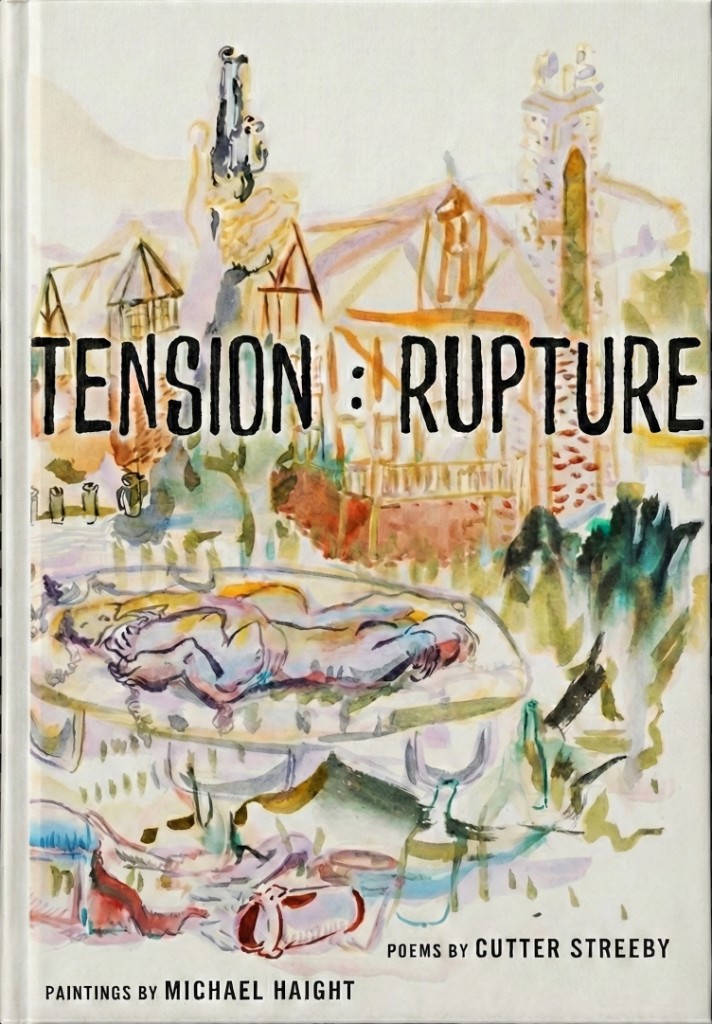 “In Tension : Rupture, Cutter Streeby navigates desire and poesis with language as a taut and slippery lifeline in poems complemented and complicated by Michael Haight's hallucinatory vignettes veering from bacchanal to disaster and back again. Though tonally elegiac, Streeby's poems trouble easy divisions between past and present, asking what memories still keep making us in their wakes and our awakenings. Streeby traverses time and tongues, eschewing a monolithic origin story and crafting a dazzling mosaic of originary moments instead.”